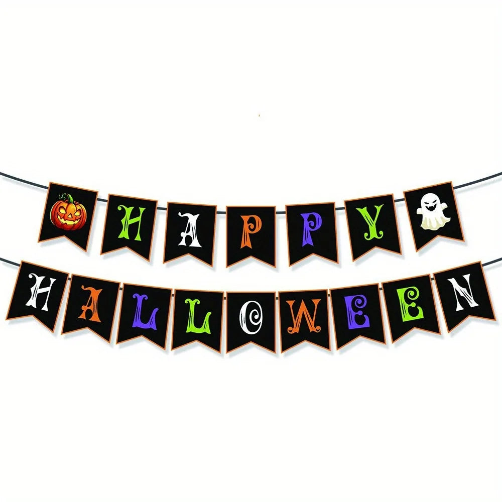 Happy Halloween Banner - Indoor Outdoor Trunk or Treat Garland Backdrop
