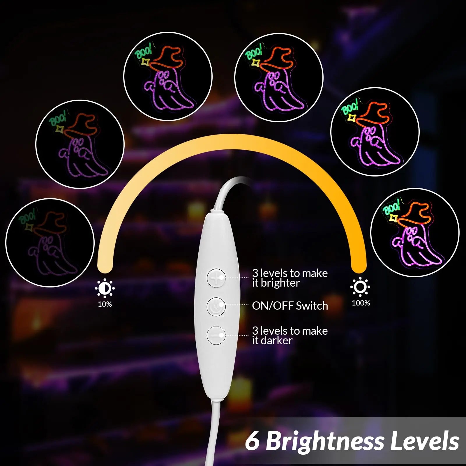 Transform your space with this LED neon ghost sign. The charming ghost wearing a witch's hat creates warm, beautiful ambiance perfect for Halloween celebrations. Suitable for walls, tables, shelves, bedrooms, living rooms, offices, and more, this neon wall decoration makes a great gift for birthdays, Valentine's Day, Christmas, Halloween, and ceremonies. Easy USB power and versatile installation options make decorating effortless.